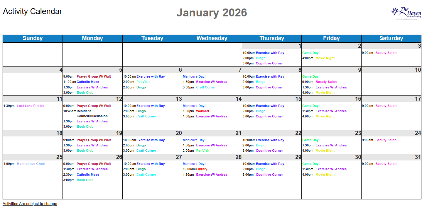 Volunteers are a vital part of our Haven family. Volunteers of all ages and backgrounds are welcome to share their time, talent, or an activity with older adults.